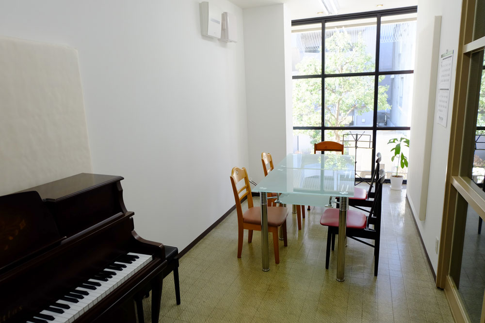 通りに面した、ごじんまりとした明るいルームです。ピアノ練習や音楽レッスンの他に少人数のミーティングやテレワークなどにご利用いただけます。